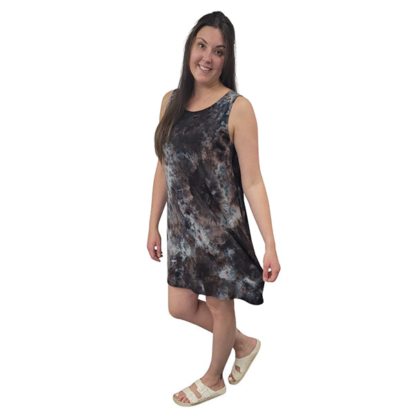 WOMEN'S SLEEVELESS DRESS TIE DYE COFFEE
